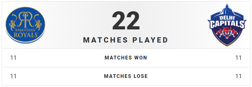 RR vs DC has played total 22 matches & both are won 11 RR & 11 DC.